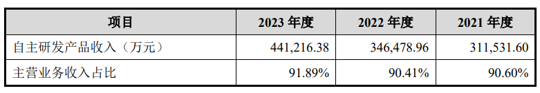 2021年、2022年和2023年,绿联科技自主研发产品的销售金额分别为31.15亿元、34.65亿元和44.12亿元,分别占主营业务收入的90.60%、90.41%和91.89%,均维持在90%以上,并保持稳定增长态势。
