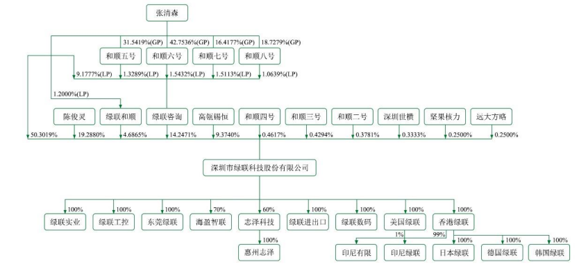 截至最新招股书签署日,绿联科技创始人、董事长张清森为该公司第一大股东、控股股东和实际控制人,直接持股50.3019%;副董事长陈俊灵持股19.2880%,亦是该公司的自然人股东之一。