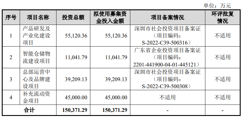 本次冲刺上市,绿联科技计划募资约15.04亿元,其中5.51亿元将用于产品研发及产业化建设项目,1.10亿元用于智能仓储物流建设项目,3.92亿元用于总部运营中心及品牌建设项目,另外4.5亿元用于补充流动资金。