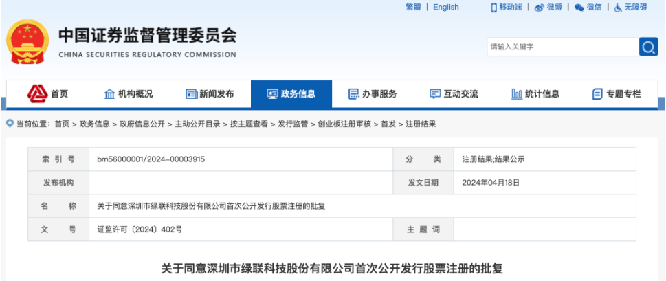 近日,证监会发布关于同意深圳市绿联科技股份有限公司(下称“绿联科技”或“绿联”)首次公开发行股票注册的批复。目前,绿联科技的注册结果已变更为“注册生效”。
