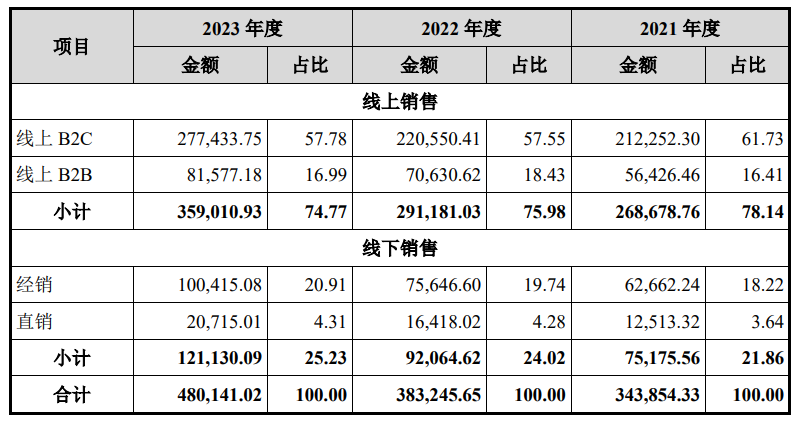愈发壮大的产品规模,驱动了绿联科技收入规模的持续稳健增长。该公司的营业收入由2021年的34.46亿元增长11.40%至2022年的38.39亿元,并于2023年进一步增至48.03亿元,增幅25.09%,三年内的复合年增长率为18.05%。
