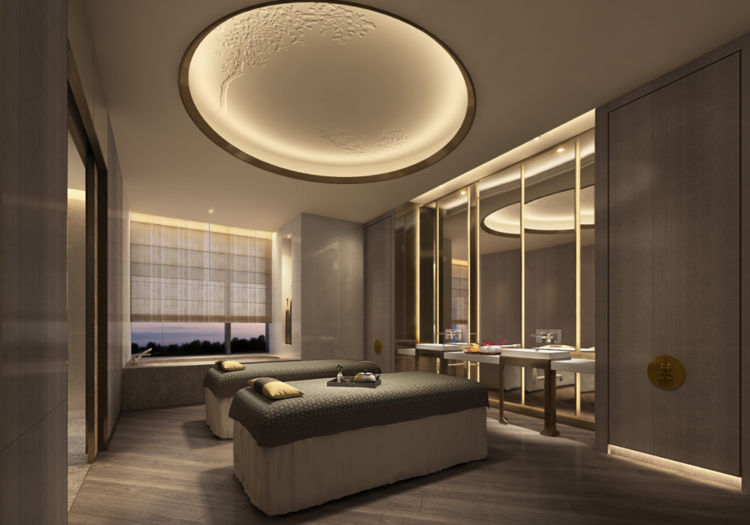 除此之外,「川」水疗、多功能宴会厅、全日制餐厅、酒吧同时涵盖恒温泳池和健身房等高端娱乐配置。「川」水疗,在传统中医学阴阳、经络的基础上,将金、木、水、火、土五行元素糅合其中,通过「川」五行元素的精油、香熏、蜡烛和茶的辅助,达到有效的调理作用。