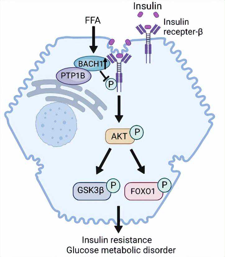 图1.BACH1促进小鼠肝脏胰岛素抵抗的机制示意图