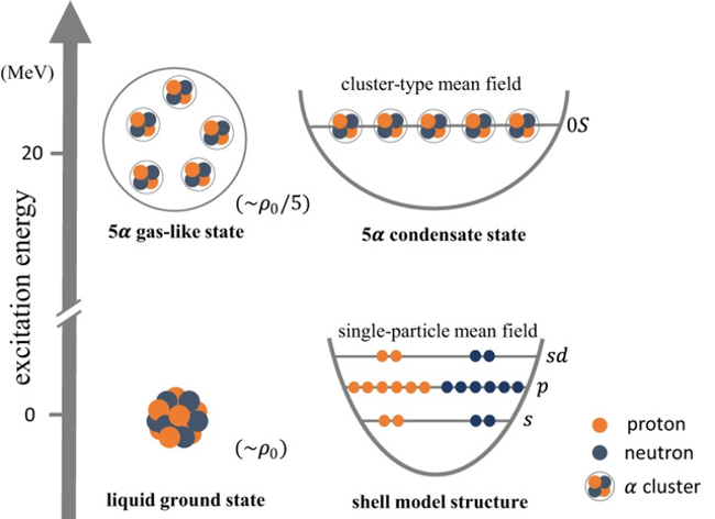 图1.20Ne原子核的基态(单粒子运动为主)激发到5α凝聚态(团簇运动为主)示意图(,8206(2023))