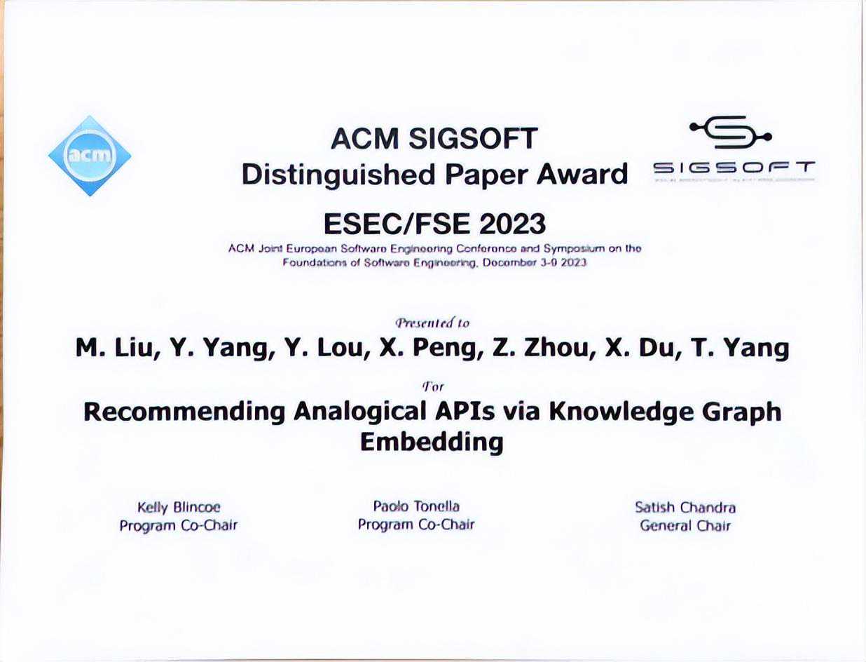 1.计算机科学技术学院CodeWisdom课题组研究论文获ACMSIGSOFTDistinguishedPaperAward