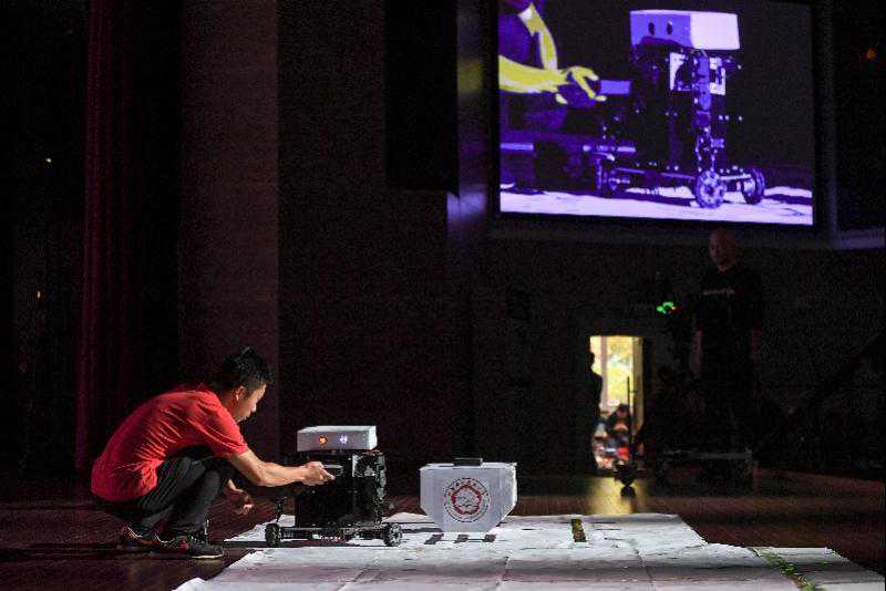 在中科大校园机器人大赛上,一名大学生在比赛中调试机器人。新华社资料图