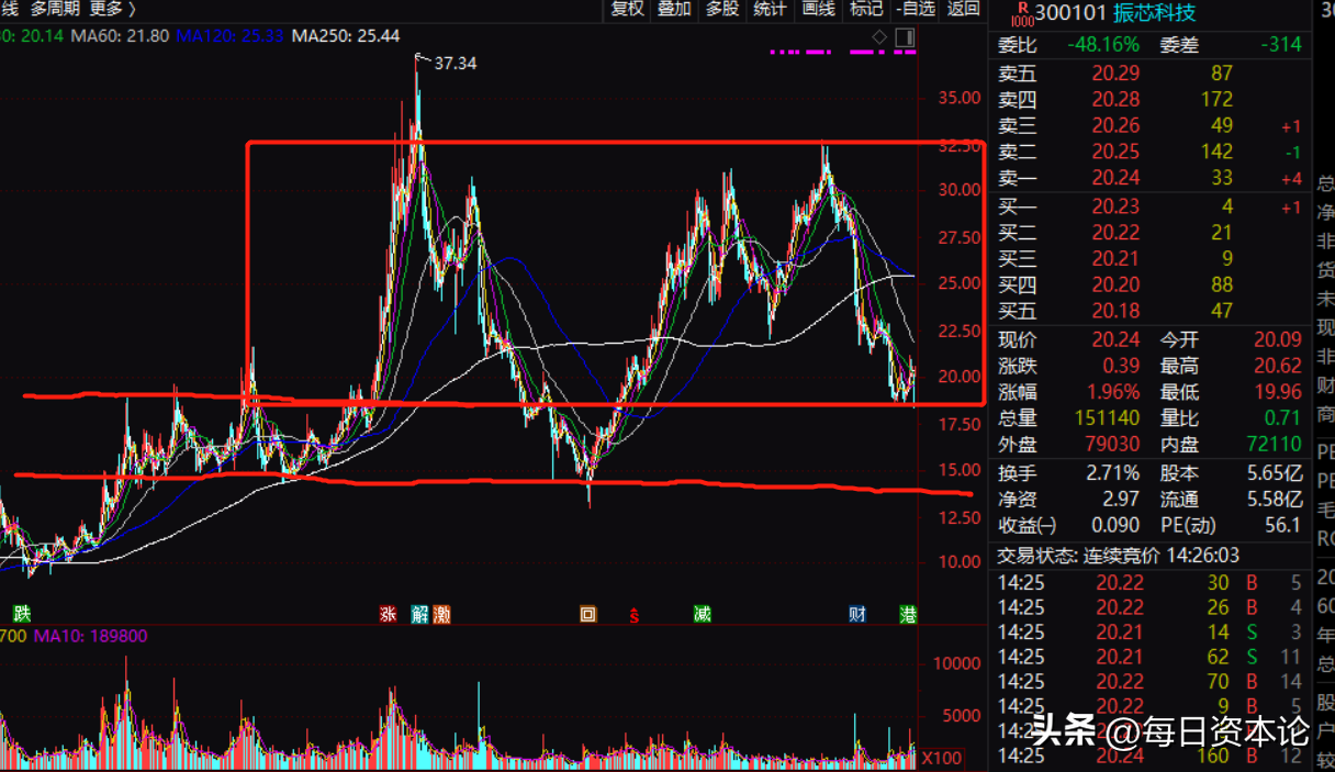 从振芯科技的股价走势来看,自今年3月9日其股价摸高32.79元后,便开始步入下行通道。7月10日股价探至阶段性底部18.3元。该区域处于振芯科技自2021年4月以来形成的宽幅震荡的箱体底部区域。再加上连续下跌,技术上短期内其股价存在反弹需求。