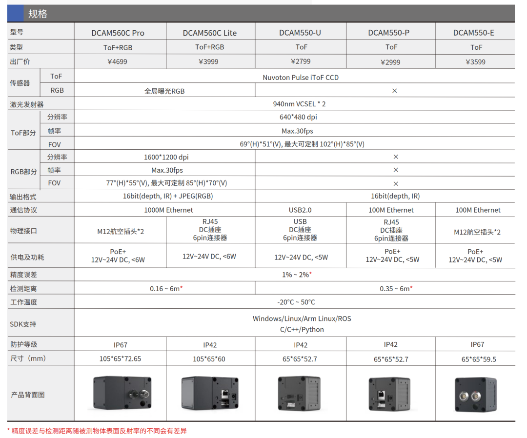 -支持DepthHDR模式以获取高对比度和复杂场景中的数据