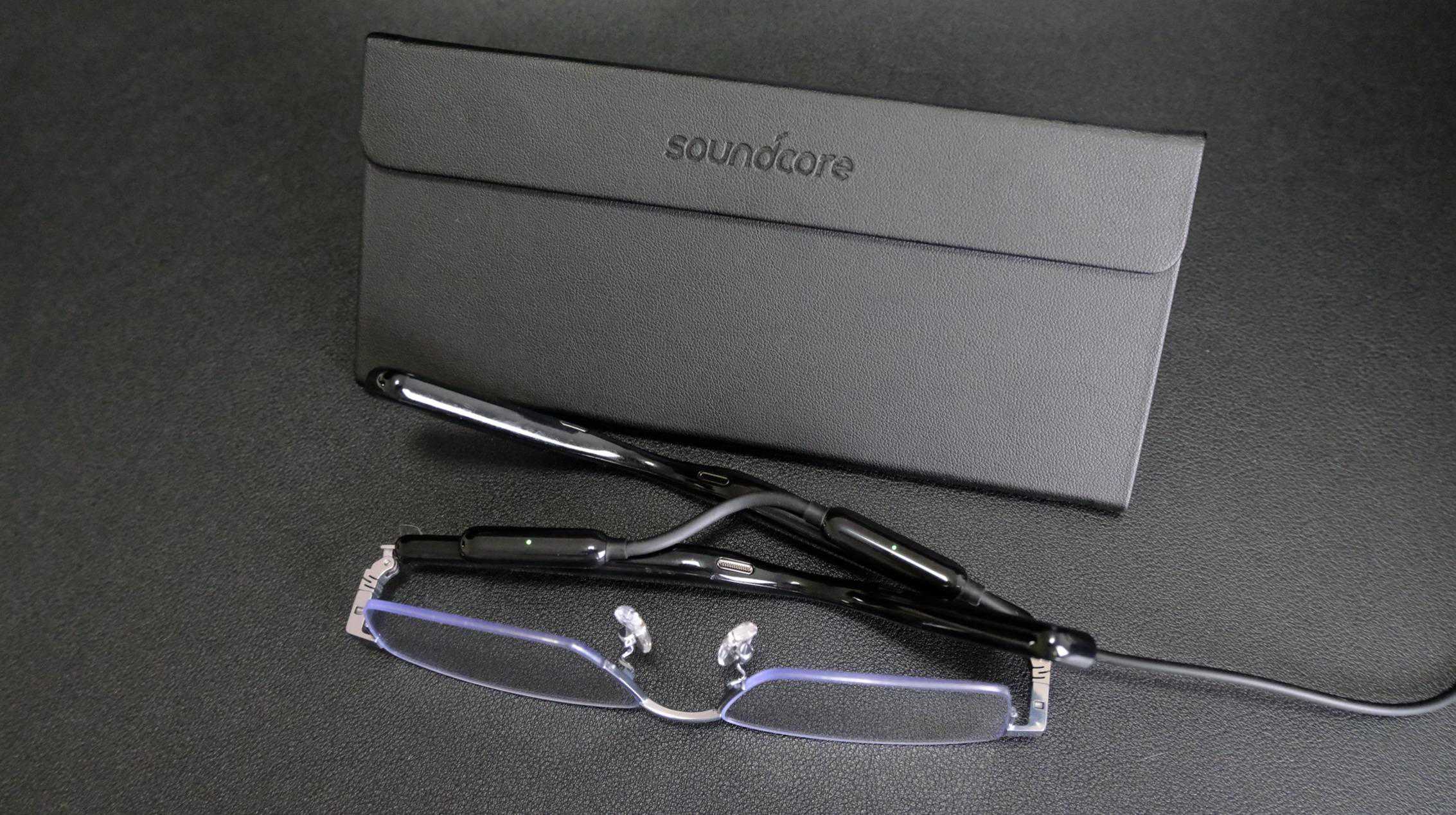 ▲它的眼镜盒是折叠式的设计,非常方便外出携带,表面由一层带有细纹的人工皮革来覆盖,上面还印有Soundcore的标识,看上去非常高档。