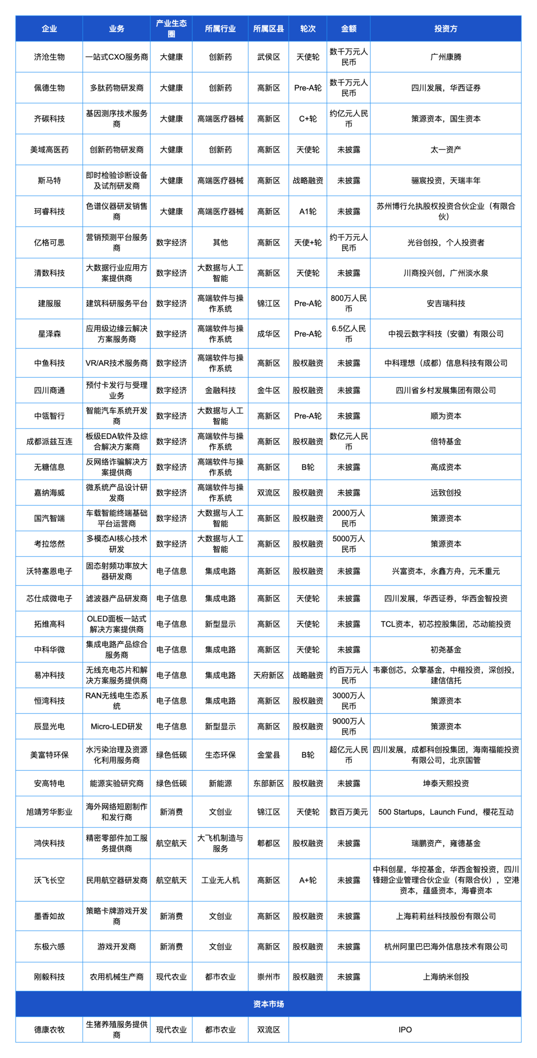 从行业分布来看数字经济、大健康是本月成都投资热点行业。